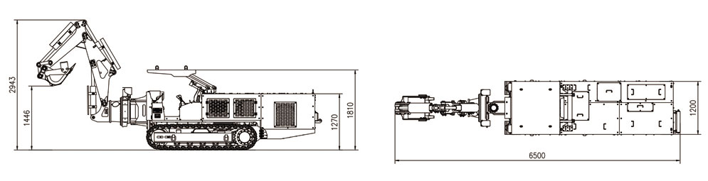 工作臂可以沿車身軸線旋轉360°,左右擺動±35°(擺動幅度≥5000mm),上下移動350mm,可以滿足挖掘、側掏、翻轉、破巖、裝車、起吊等各項動作要求,實現挖掘毛水溝、臥底、破巖、清理浮煤、清理皮帶機底部、平整巷道及小型配件吊裝等多種功能。